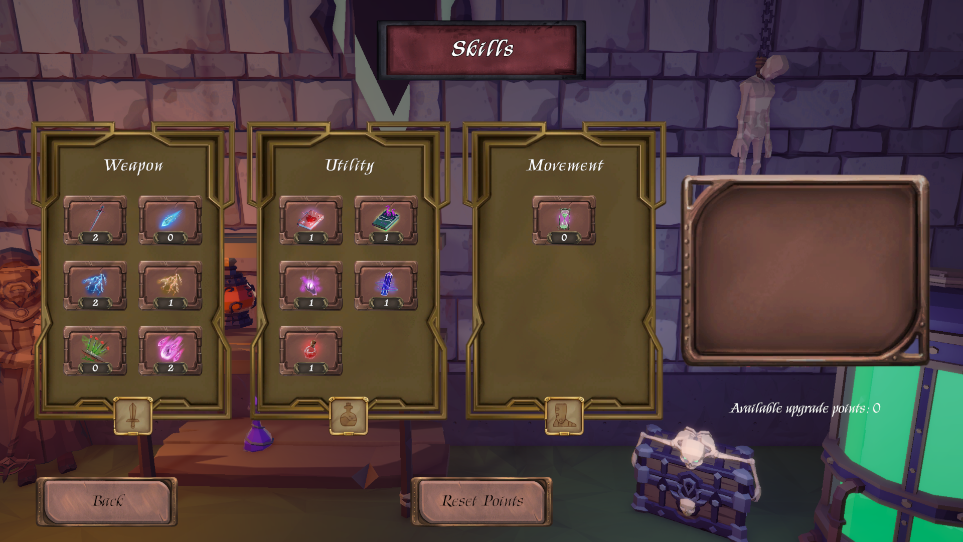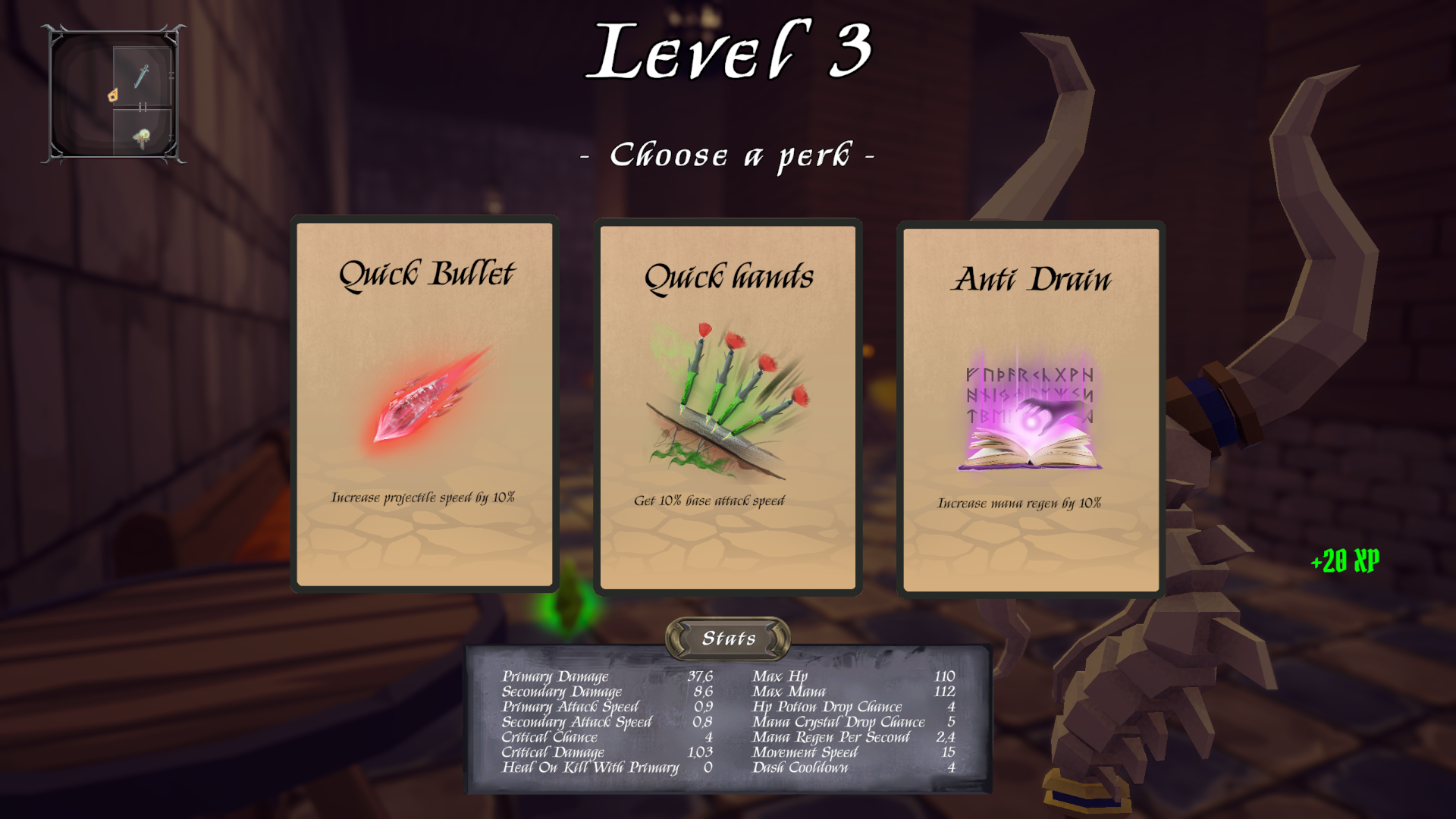 Enter the castle and defeat enemies to get to the level boss. Upgrade your skils ion the menu and collect perks to get stronger.